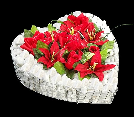 Plaque Funeraire Cœur Avec Gravier Roses Et Lys 35 0 X 35 0 X 8 0